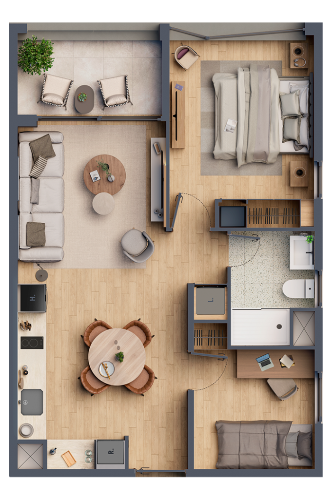 . Distribución interior adaptable que permite modificar el uso de los espacios a tu gusto.