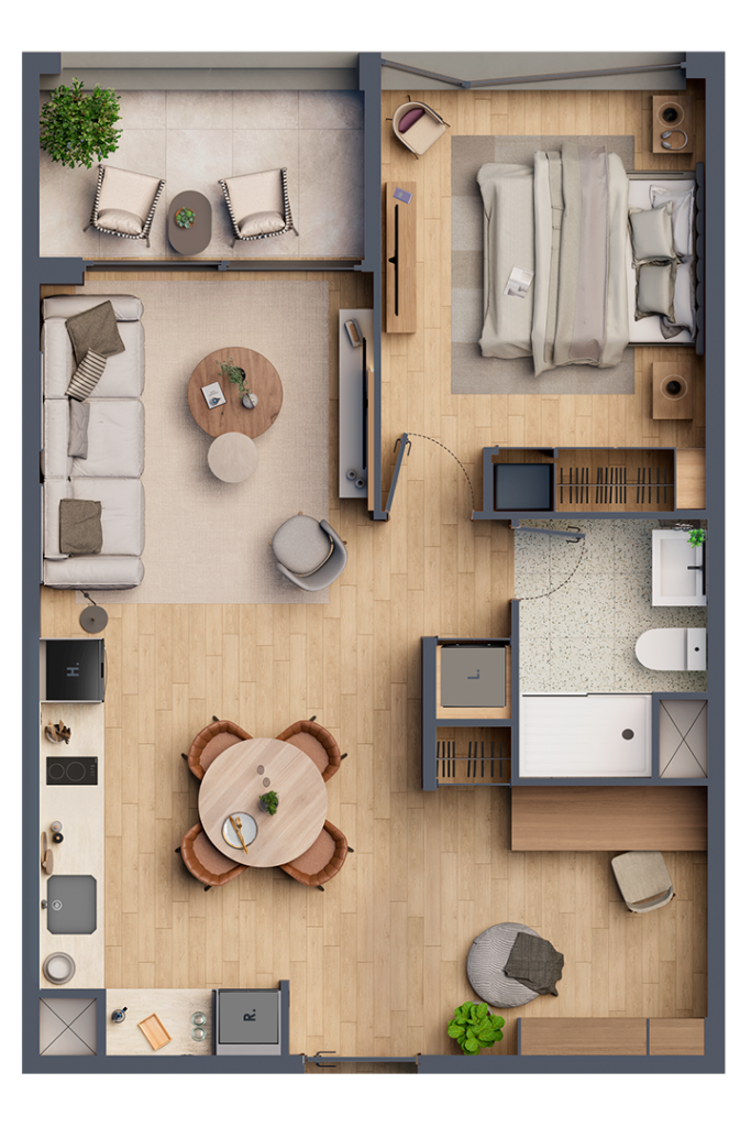 Un proyecto boutique de 8 pisos que fusiona diseño, tecnología y rentabilidad. LÜM ofrece departamentos amplios y modernos, con acceso inteligente y eficiencia en gastos comunes. Contará con una piscina climatizada, fit zone y un social club en el rooftop.